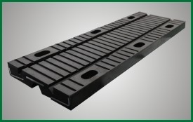橡膠伸縮裝置利用橡膠材料剪切模量低的原理設(shè)計(jì)制作而成的,在剪切型橡膠伸縮體設(shè)有上下凹槽,橡膠體內(nèi)埋設(shè)承重鋼板和錨固鋼板,并預(yù)留螺栓孔,通過螺栓與梁端連成整體跨越梁端間隙。依靠上下凹槽之間的橡膠體剪切變形來滿足梁體結(jié)構(gòu)的相對(duì)位移。具有伸縮量大、行車平穩(wěn)等優(yōu)點(diǎn)。該產(chǎn)品可用于公路橋梁結(jié)構(gòu)中。