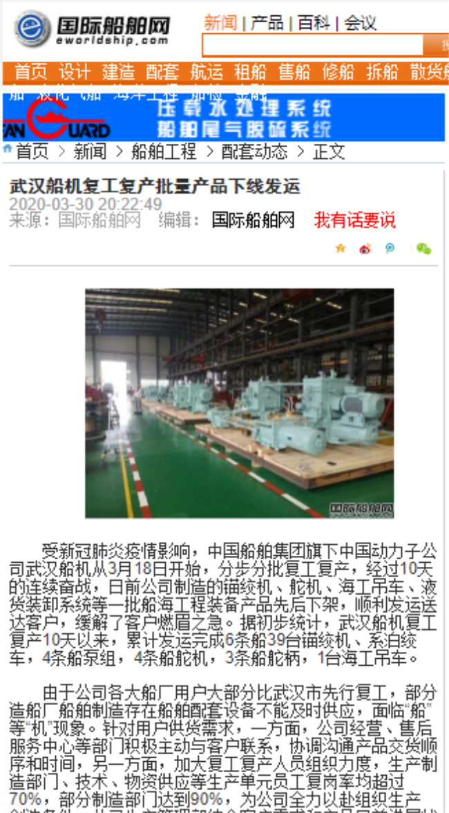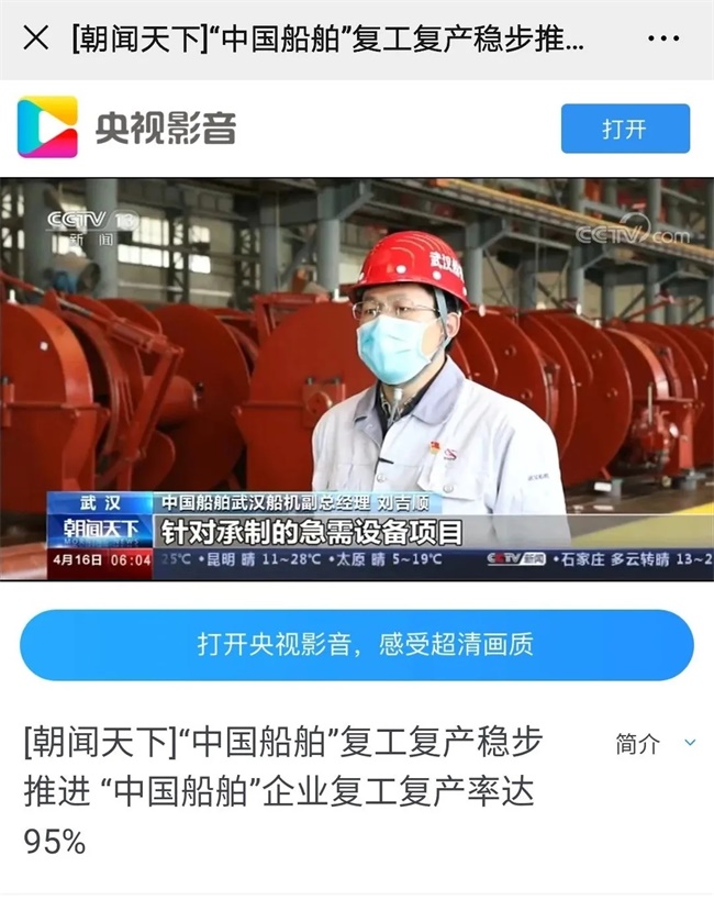 多家媒體聚焦持續(xù)報道中國船舶武漢船機