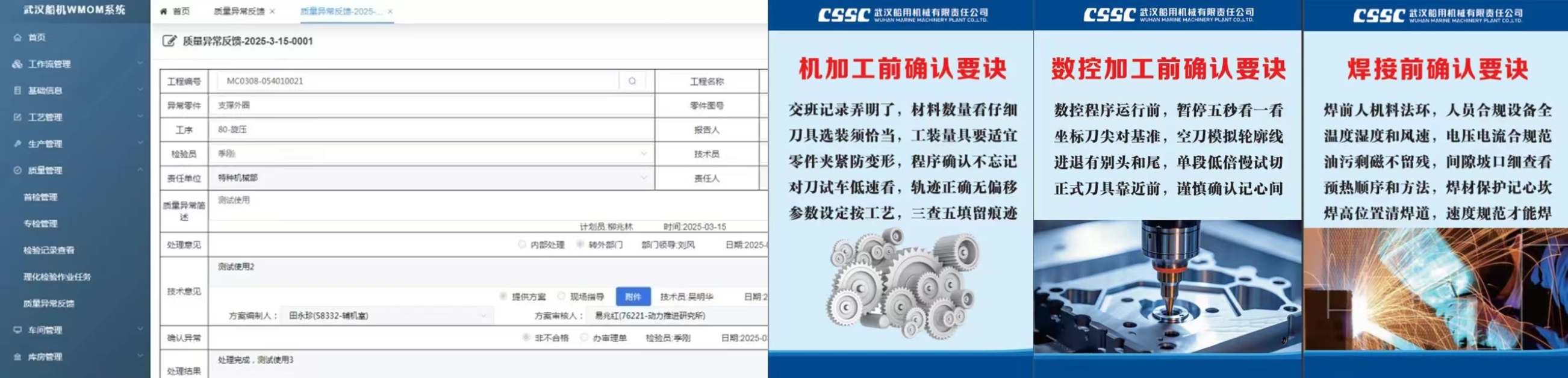 為進(jìn)一步提升生產(chǎn)管控水平,中船集團(tuán)武漢船機(jī)總結(jié)質(zhì)量管理好的經(jīng)驗做法,以操作者為中心,探索新的管控手段,利用信息管理系統(tǒng)賦能,基于WMOM系統(tǒng)推出“確認(rèn)制、舉手制、推送制”功能。